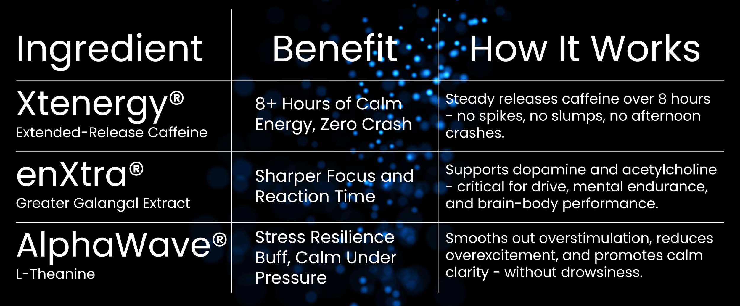 Each capsule is stacked with clinically studied ingredients that target mental clarity, motivation, and stress resilience — so you can train with calm, controlled intensity.